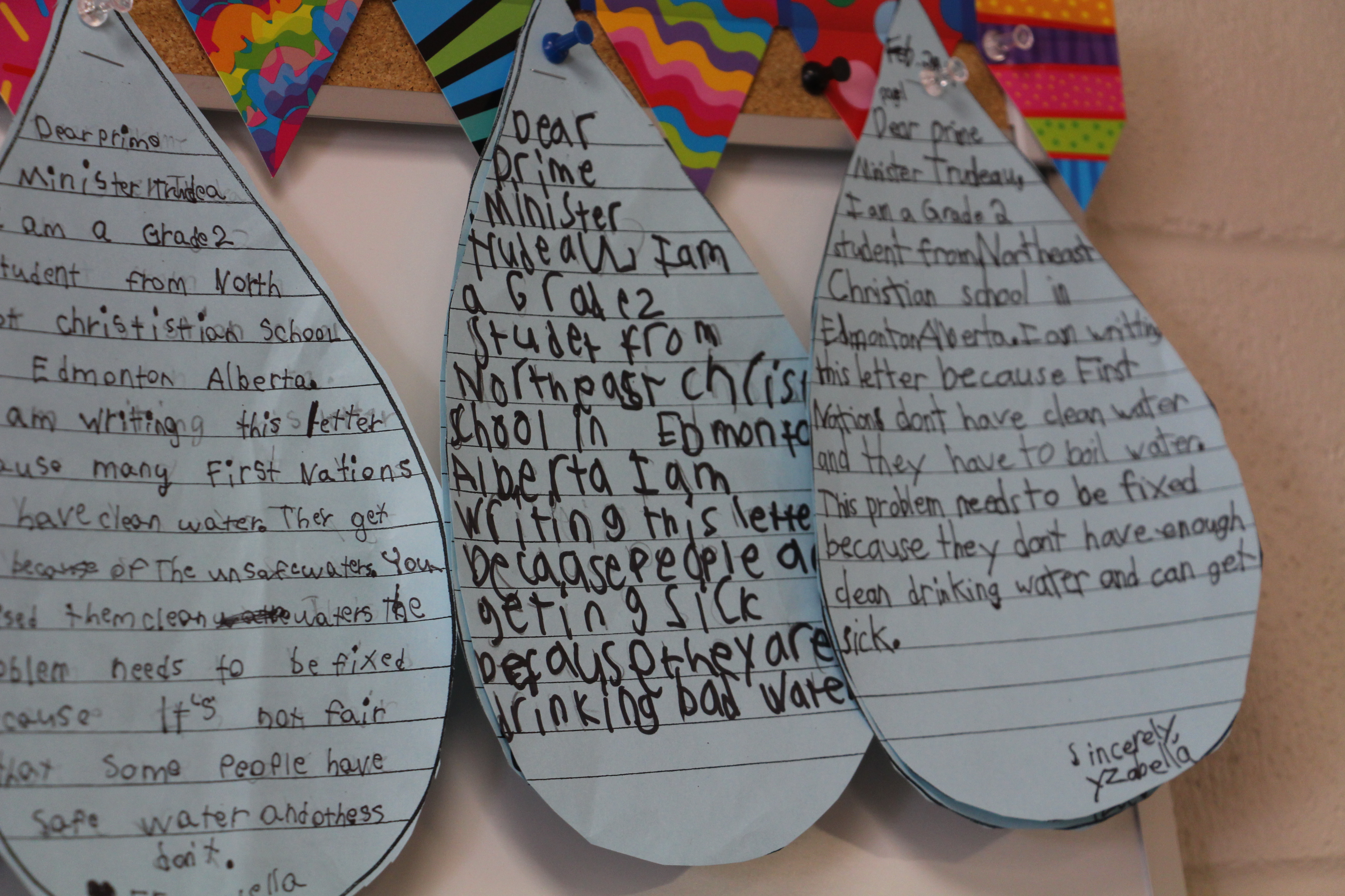 Mind challenging, hand engaging, heart shaping, role defining, 60 year learning was celebrated in Grade 2J at Edmonton Christian Northeast this week. In the past 6 weeks, as they studied liquids, states of matter, natural resources, basic mathematics, geography and literacy, students in Grade 2 learned the “60 year lessons” about seeking justice and building community. These students learned that not everyone has clean water and that unclean water leads to diseases and deepens the effects of poverty. They set out to play their role in a better story– God’s story! A challenge was given to the community to fund four wells through World Renew (website here). The students listened to a grandparent who has assisted an African community in building a well. With ninth graders, they wrote letters to the Prime Minister about the 71 First Nations communities in Canada that still do not have safe drinking water. They made presentations to classes in their own school, at Edmonton Christian High and to the ECNS Parent Council. While they were doing all of this, they learned deeply the outcomes that the Alberta curriculum has laid out for second graders in subjects like science, math, social studies and language arts.