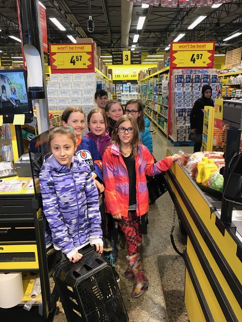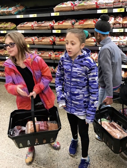 The grade 4 class, and teacher (ECHS alumnus) Liz Rachul connected with the Mustard Seed Church downtown and found out that they have a program that provides sandwiches for those community members who for various reasons cannot join the inside meals served at Mustard Seed. Ms. Rachul provided the students with a grocery list and challenged them to check three different stores to find those ingredients within a $100 budget. Totalling the cost of multiple loaves of bread and all the other ingredients needed, created lots of real-work practice in addition and subtraction of decimals. Students had to stay within budget. Not $0.05 over! Once that work was done, the class picked a plan that was on budget and purchased the ingredients.