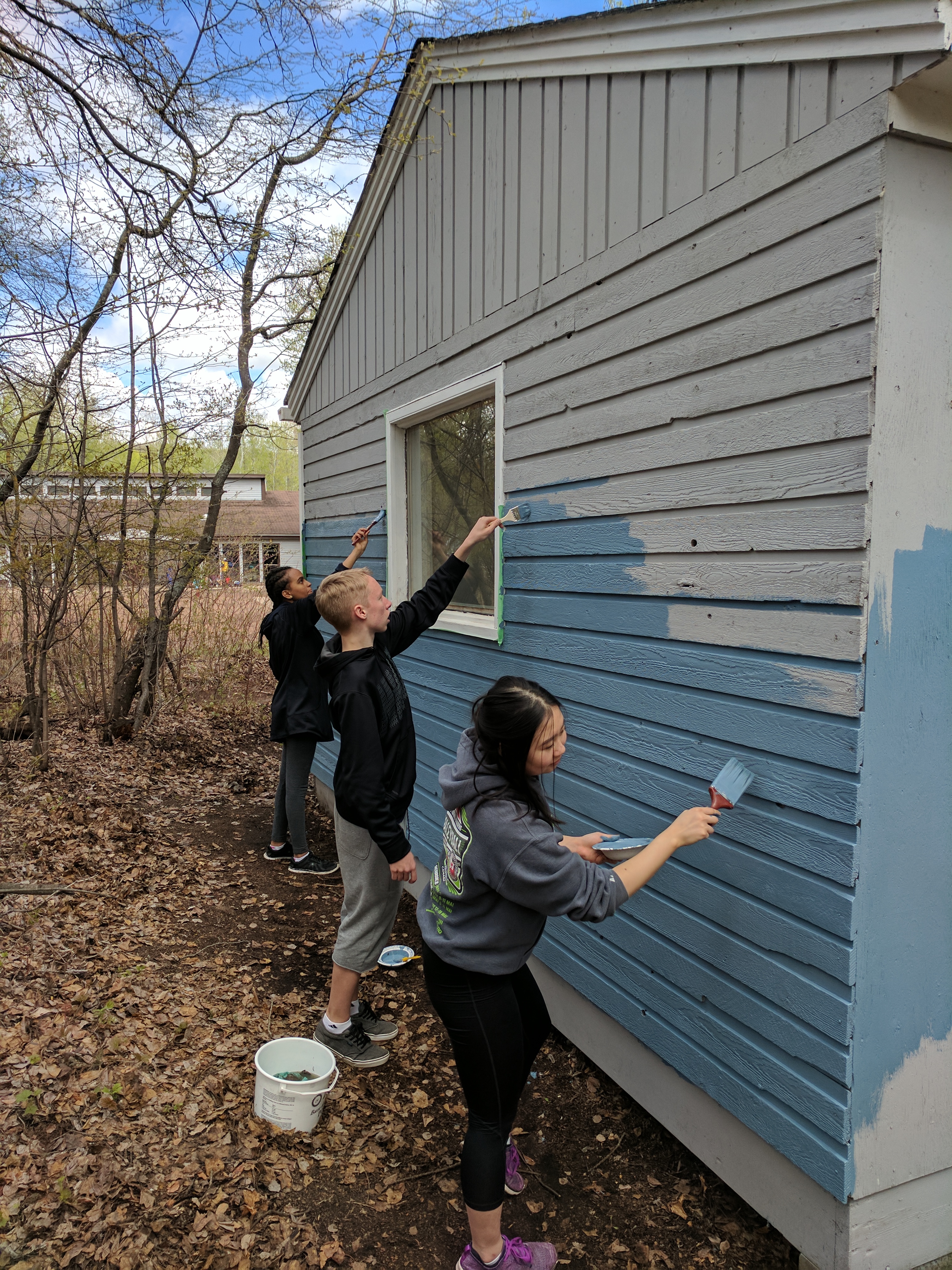 But prescribed curriculum aside, sometimes there is value in deliberately “living our way into new ways of thinking.” Each year, ECHS students set aside their studies for two days of service to various organizations and camps. Pictured here are just a few of the groups of Grade 10s and 11s working in various locations. (Thanks to the staff members who shared these shots).